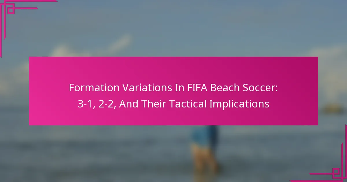 The 3-1 and 2-2 formations are common tactical setups in beach soccer, each offering distinct advantages based on team strengths and match situations. The 3-1 formation emphasizes a strong defense with one player supporting the attack, while the 2-2 formation balances offensive and defensive responsibilities among players.